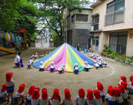 10:20 - 11:30 朝の気持ちの良い時間にしっかりと 午前の保育 保育の始まりは、みんなで楽しくおうたをうたいながら、みほとけさまに手を合わせる「おまいり」からはじまります。 「おまいり」が終わったら、お外で遊んだり、音楽の練習をしたり、季節にあわせた製作など、さまざまな活動を行います。 たかみの保育