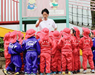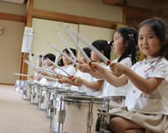 12:30 - 13:30 遊んだあとはもう一頑張り! 午後の活動 おいしい昼食をたべたら後は、元気いっぱいお外で体操をしたり、午前中の製作の続きや、お歌を歌ったりします。また折々での行事に向けての練習、特に年長さんはマーチング(鼓笛演奏)の練習に力を入れています。