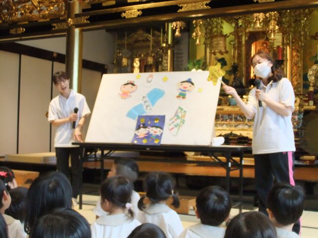 お楽しみの出し物は、植田先生と村上先生による『七夕』のお話のパネルシアターでした☆彡