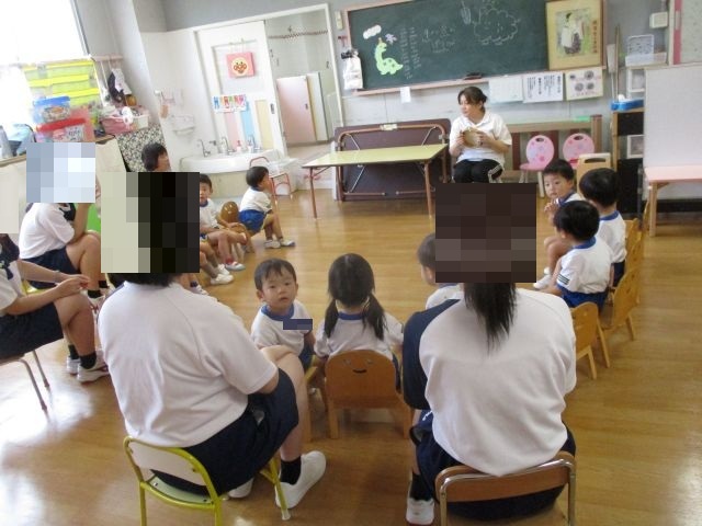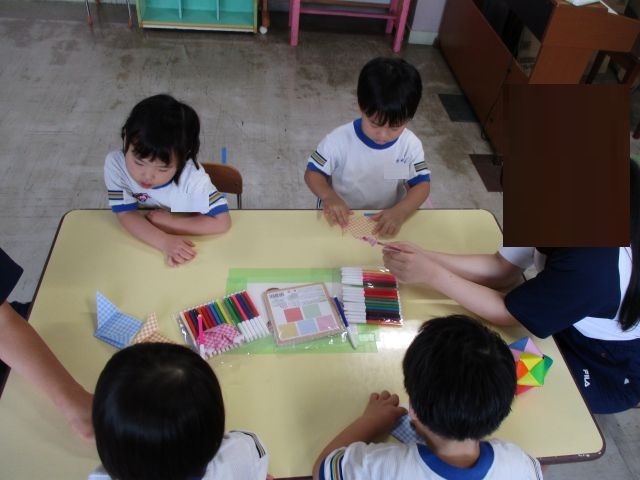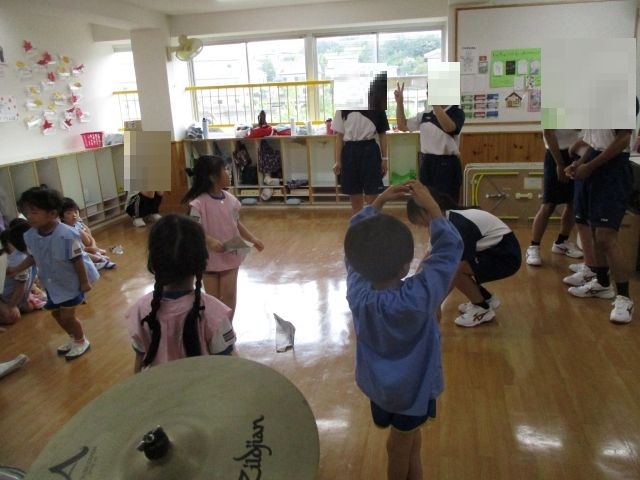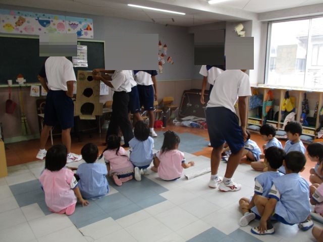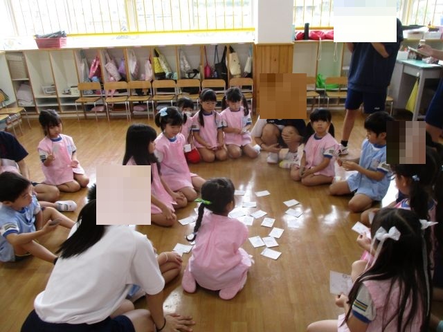 八幡高校交流会 今日は八幡高校のお兄さん、お姉さんが家庭科の授業の一環で高見幼稚園に遊びに来てくれました♪ お兄さん、お姉さんと一緒にゲームをしたり製作をしたりしてすごく楽しそうでしたよ! つき組🌙 かるた ほし組☆ 飛行機飛ばし ぱんだ組🐼 ボール投げ うさぎ組🐰 的当て あひる組🦆 わなげ ひよこ組🐤 折り紙 いちご組🍓 宝探し 22日も八幡高校との交流会があります‼ 次はどんなゲームをするのかな~? 楽しみだね😆🎶 今日もブログを見ていただきありがとうございました(*´ω`*)