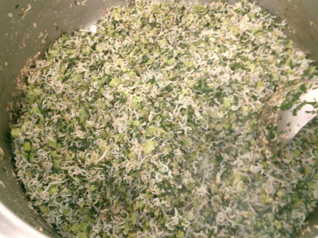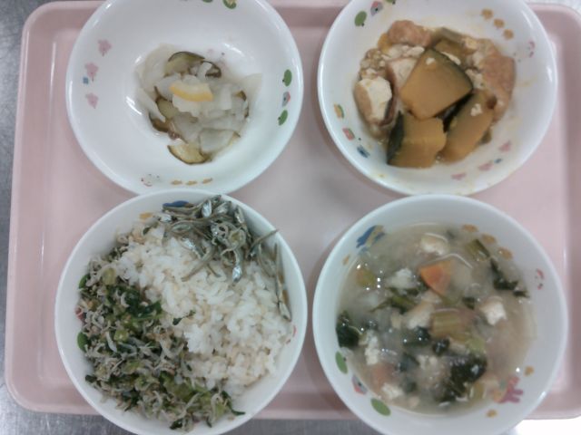 かぶの葉、しらす干し、ごまを調味料で炒めて作ります。