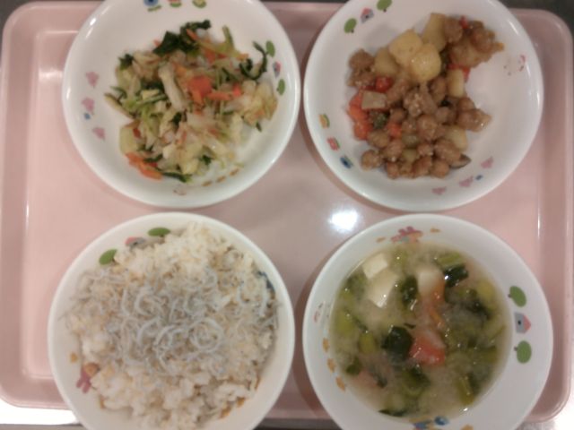 「大豆と野菜のからめ和え」は、大豆・じゃがいも・にんじん・いんげん豆・エリンギを、
