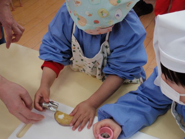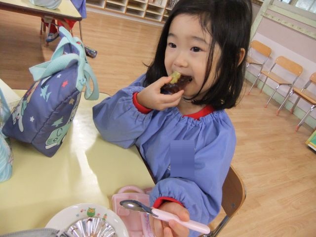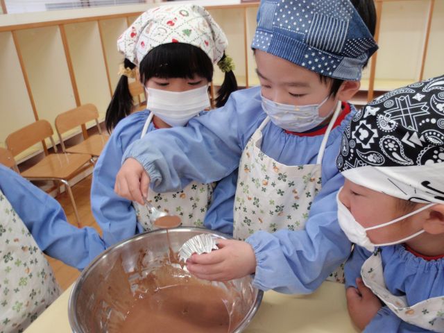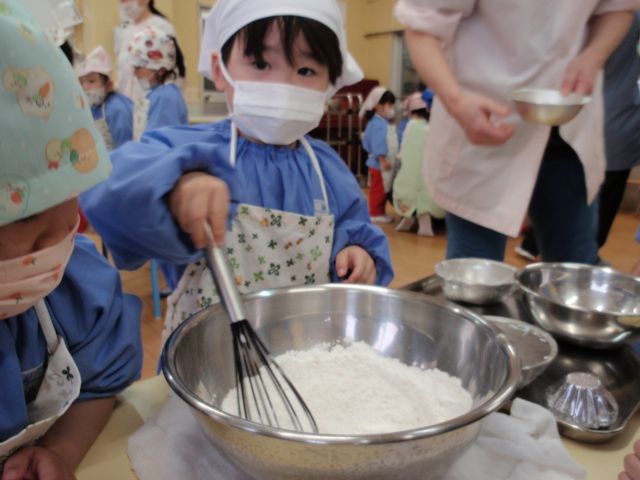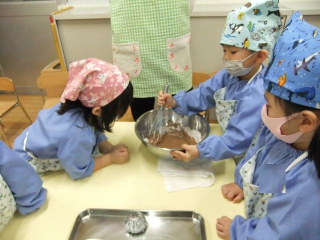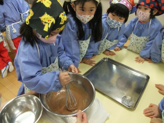 年少 料理教室 今日は、年少組のお料理教室でした! ずっとこの日を楽しみにしていた年少組さん(^▽^)/ エプロンを付けてきれいに手を洗ってスタート!! 今日はさつまいもとココアの蒸しパンを作りました🧁 まずは吉田先生とお料理教室のお約束をしました。 そして、グループのお友だちと協力してさつまいもの型抜きをしたり、 生地を混ぜて型にスプーンで入れました! 自分たちで作った蒸しパンとってもおいしかったね💕 今日も最後までブログを見ていただきありがとうございました。