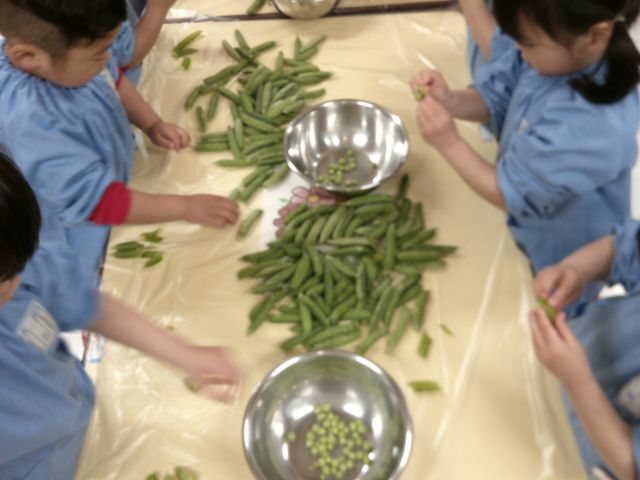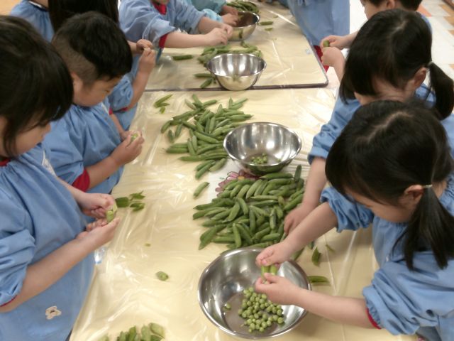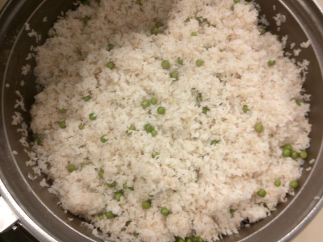 グリーンピースは別ゆでをして、炊いたごはんに混ぜ込みます♪
