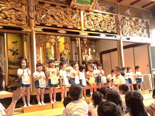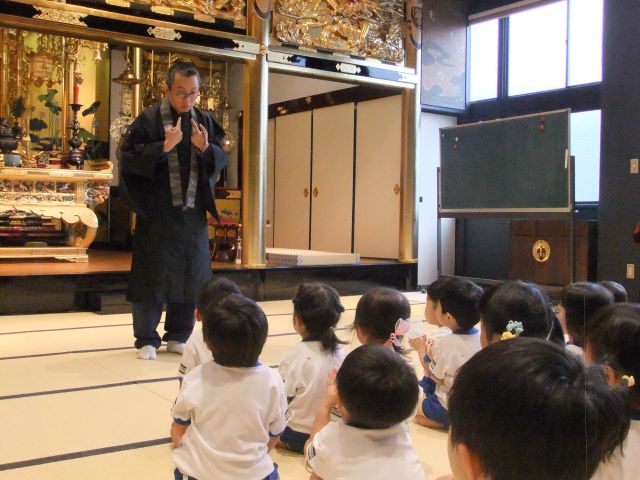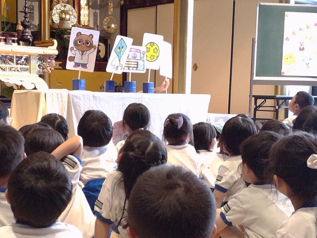 今日は智海先生から御仏様はどんな人だと思う?という問いからみんなにも御仏様のような子どもになってほしいというお話がありました。