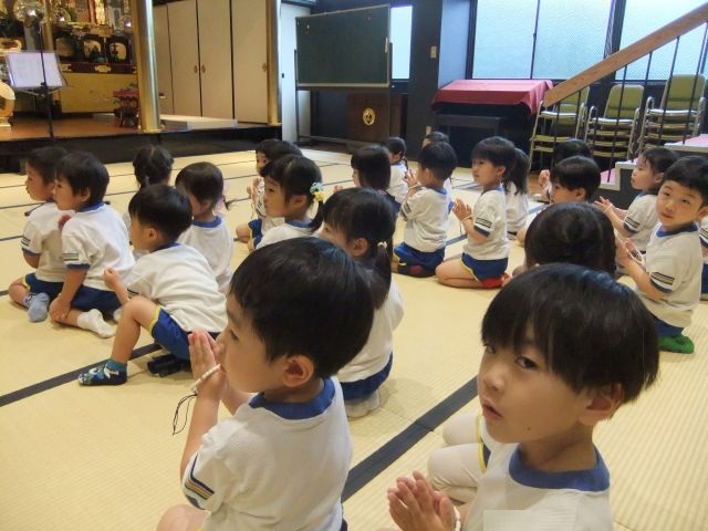 御仏様のような気持ちを持つためには、お友達、先生、お父さんお母さんのお話をしっかり聞くことから始めてみよう。と約束しました!