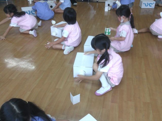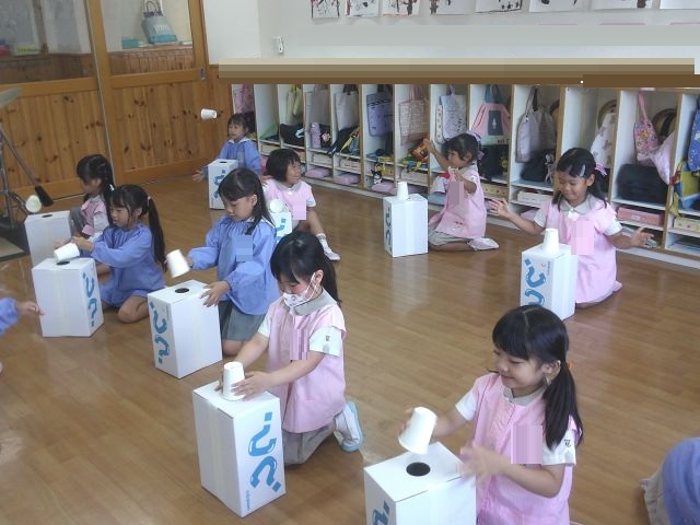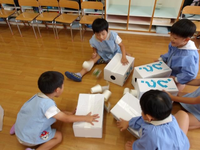 紙コップが飛ぶのか試行錯誤しながら楽しんでいました♪