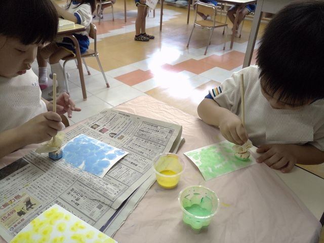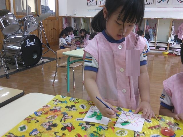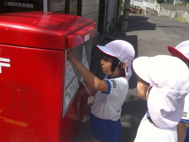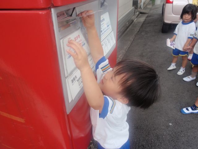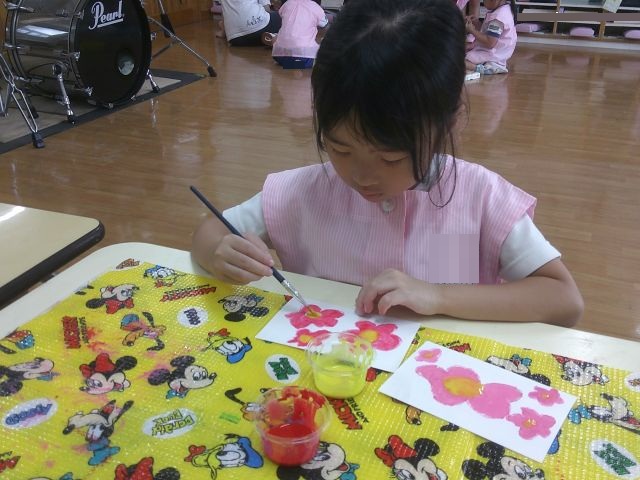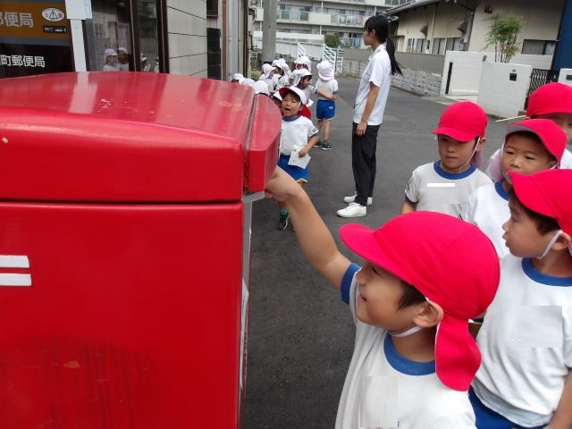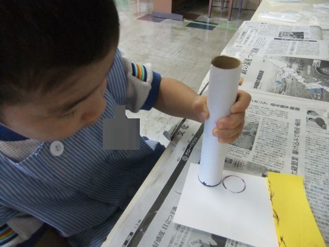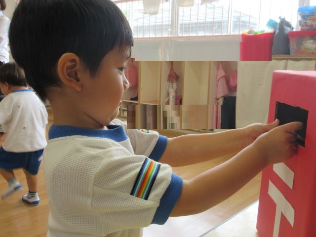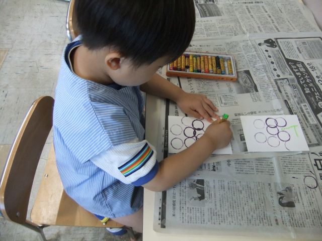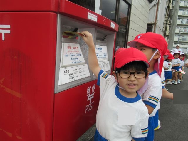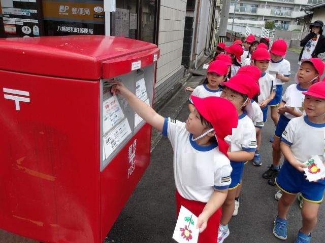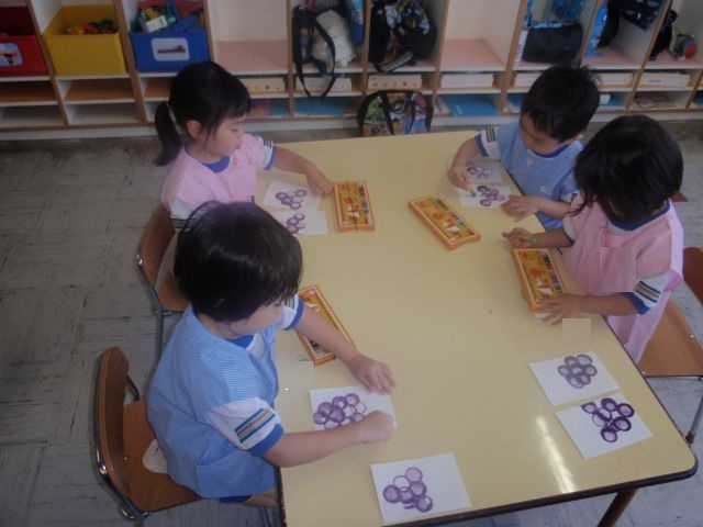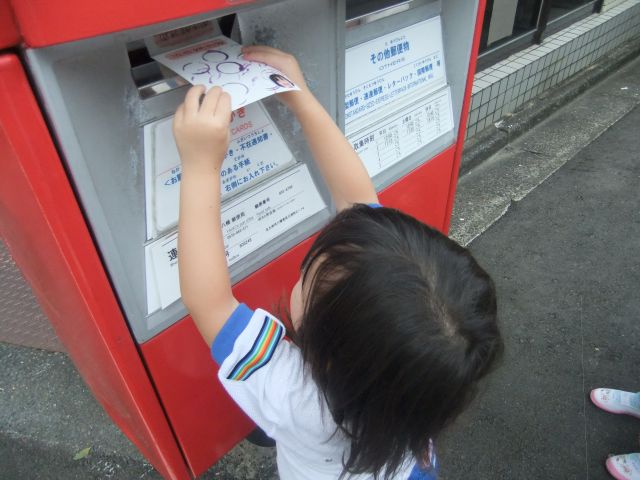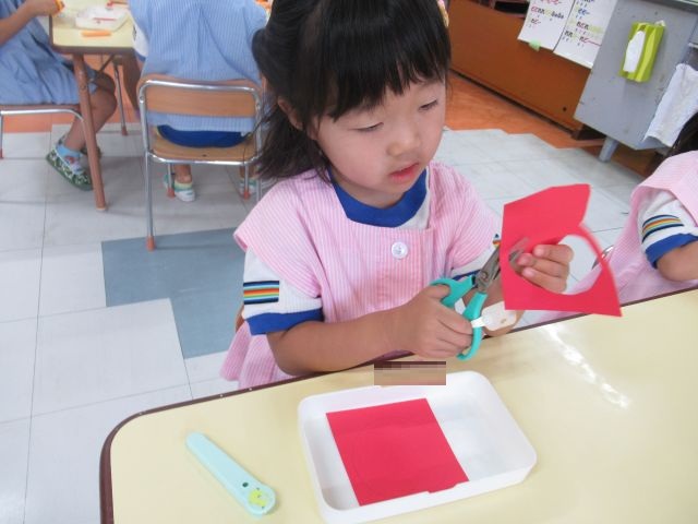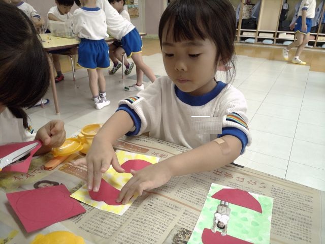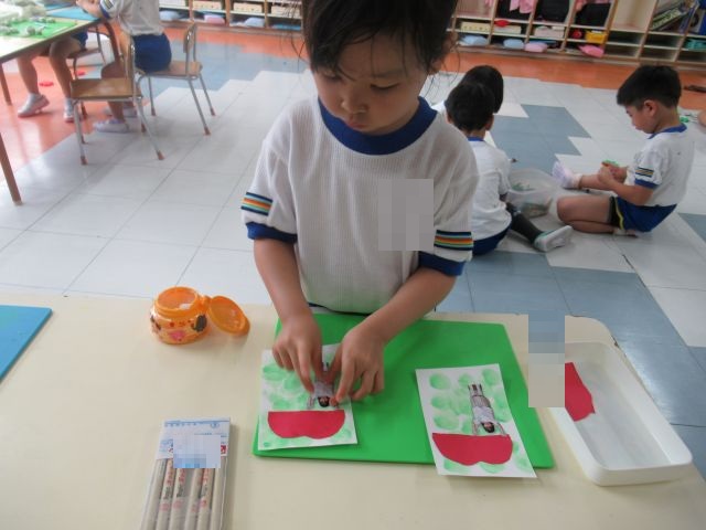 ハガキにスタンピングをしてリンゴをはさみで作りました🍎