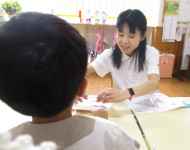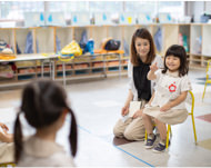 12:30 - 13:30 遊んだあとはもう一頑張り! 午後の活動 おいしい昼食をたべたら後は、元気いっぱいお外で体操をしたり、午前中の製作の続きや、お歌を歌ったりします。また折々での行事に向けての練習、特に年長さんはマーチング(鼓笛演奏)の練習に力を入れています。